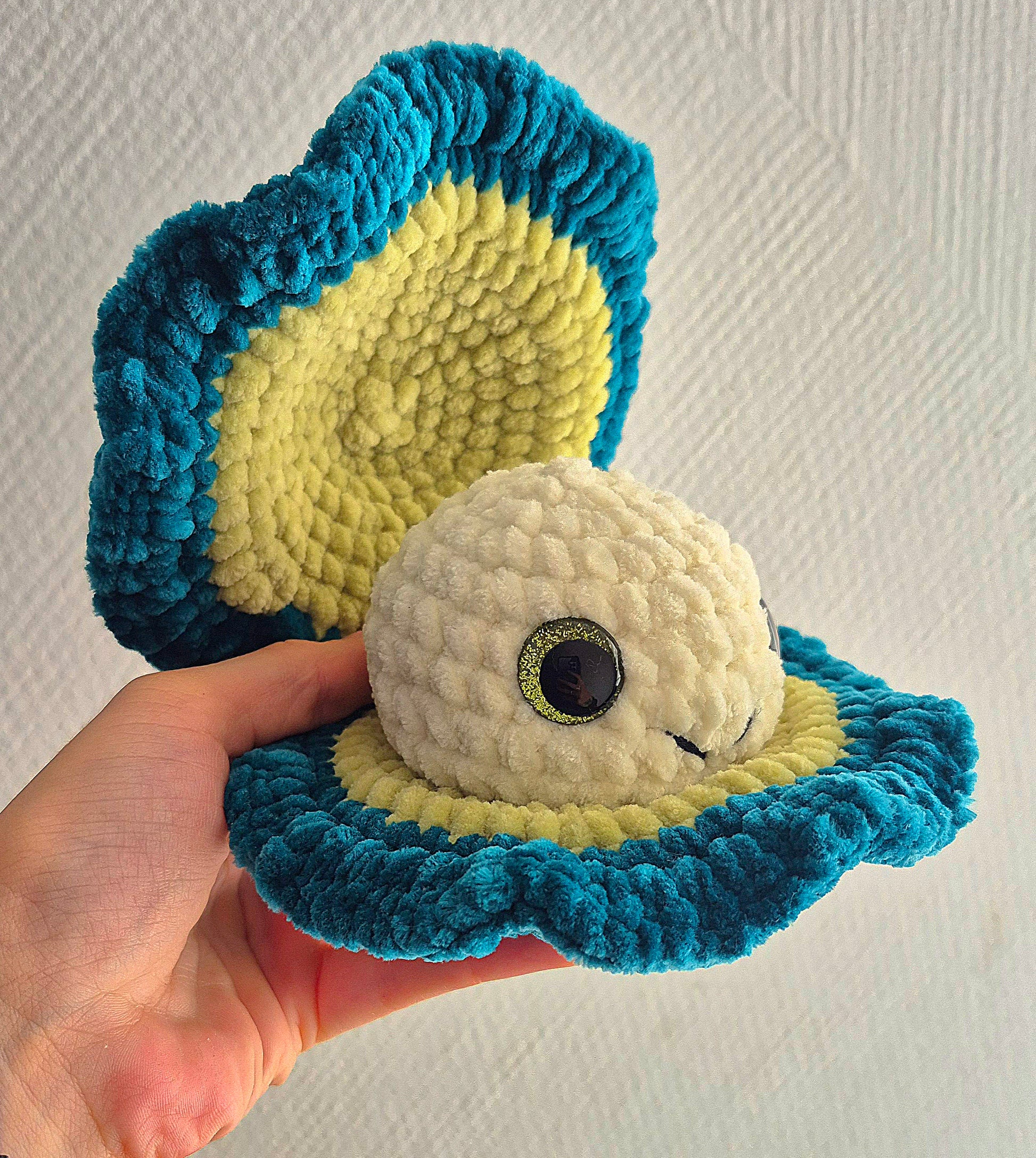 Selbst gehäkelte Muscheln in verschiedenen Farben nach meiner eigenen Anleitung.